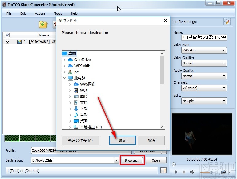 5.选择好尺寸之后点击左下方输出路径右边的Browse按钮,选择文件的输出保存路径,如下图中所示。