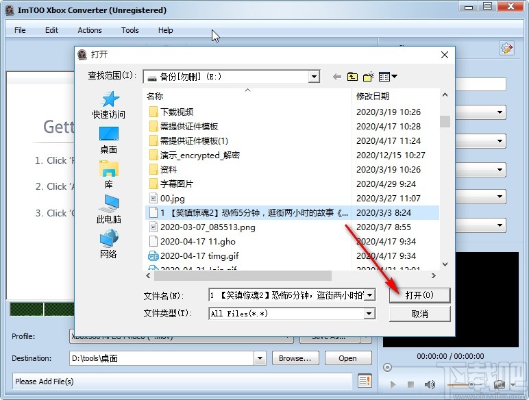2.点击这个添加文件按钮之后,接下来打开下图所示的界面,在这个界面中我们选中目标视频文件之后点击打开按钮进行下一步的操作。