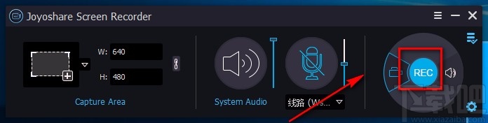 7.完成以上所有步骤后,我们在窗口右侧找到下图所示的REC按钮,点击该按钮就可以开始录制屏幕。