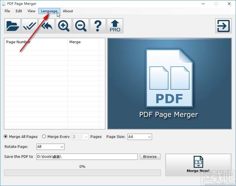 PDF页面合并器这款软件是一款可以帮助用户合并PDF文件页面的软件,可以将PDF文件的某些页面合并成一个单独的PDF文件,操作起来非常的方便实用,相信有很多用户都会需要用到这个功能。只不过有时用户下载安装的应用界面是全英文的,这样英文不好的用户操作起来就比较吃力,那么就需要我们将界面切换设置为中文界面了,接下来小编就跟大家分享一下PDF页面合并器这款软件设置为中文界面的具体操作方法吧,感兴趣的朋友不妨一起来看看,希望这篇教程能够帮助到大家。