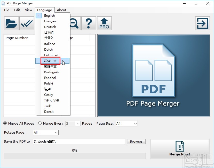 使用上述教程中的操作方法我们就可以在PDF页面合并器这款软件中设置中文了,有需要的朋友赶紧试一试这个方法,希望这篇方法教程能够帮助到大家。