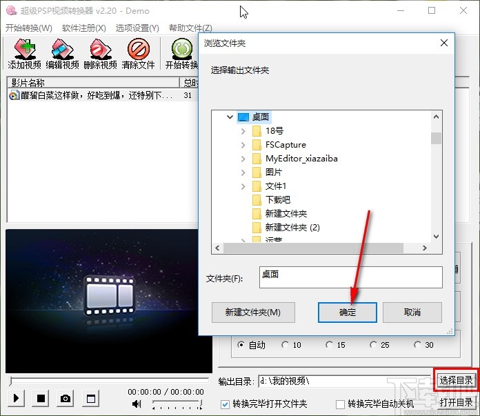 5.设置好这些参数之后,下一步在界面的右边找到选择目录按钮,点击之后在打开的界面中根据自己的需求来选择好输出位置然后点击确定按钮。