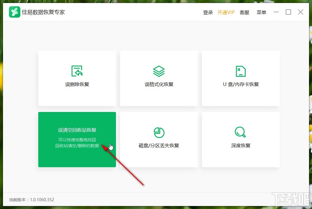 1.首先第一步我们打开软件之后,在软件中找到误清空回收站恢复这个模块,点击进入到回收站恢复功能界面。