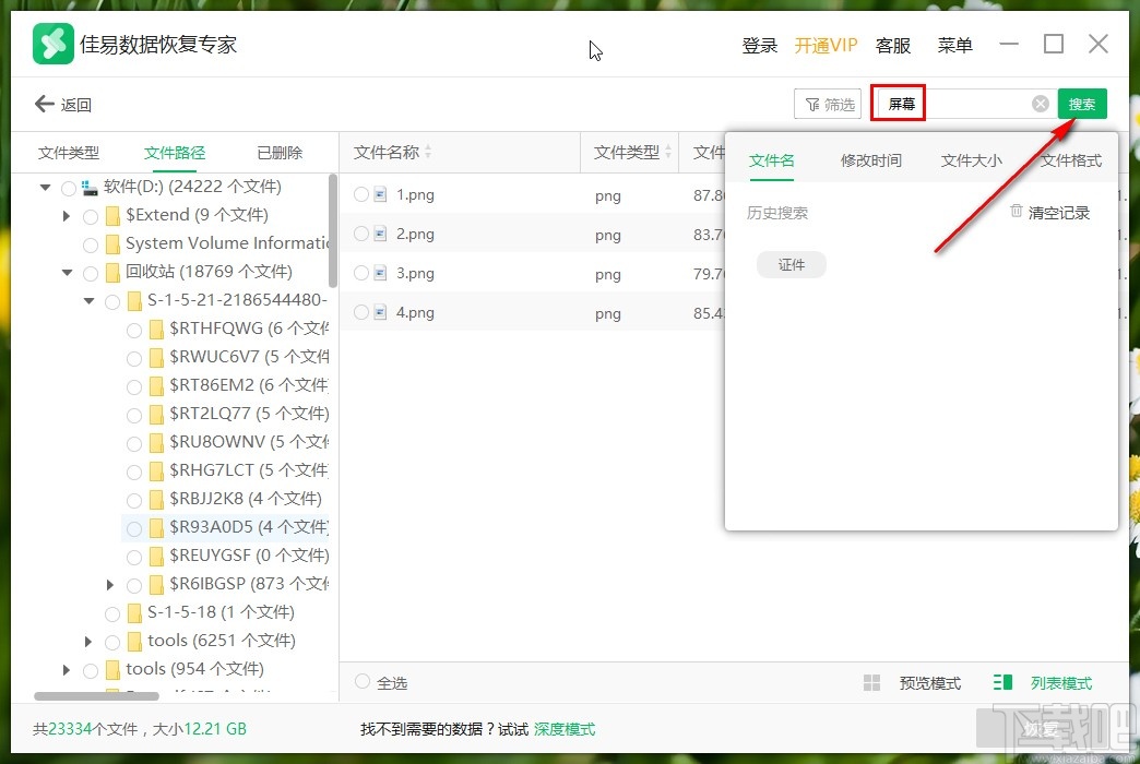 5.还有另一种方式就是通过搜索来找到想要恢复的文件,这需要用户记得恢复文件的名称,用关键词进行搜索。