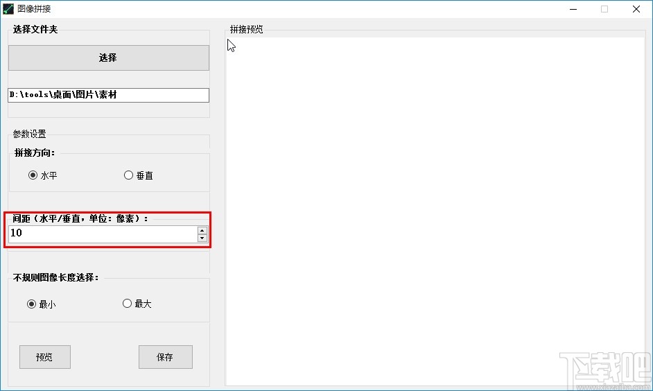 4.设置好拼接方向之后,下一步就是根据自己的需求来选择拼接的间距了,在其中设置自己想要的间距,可以直接输入数值。