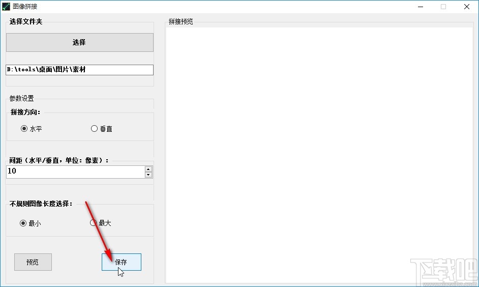 5.根据自己的需求设置好拼接的方式之后,接下来下一步我们点击界面下方的保存这个按钮,点击之后准备保存拼接图片。