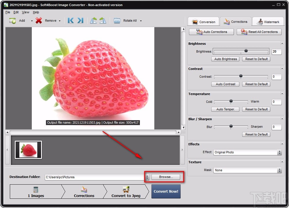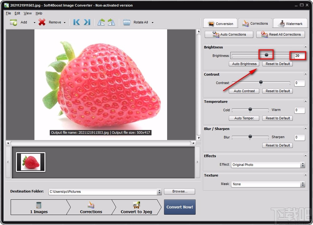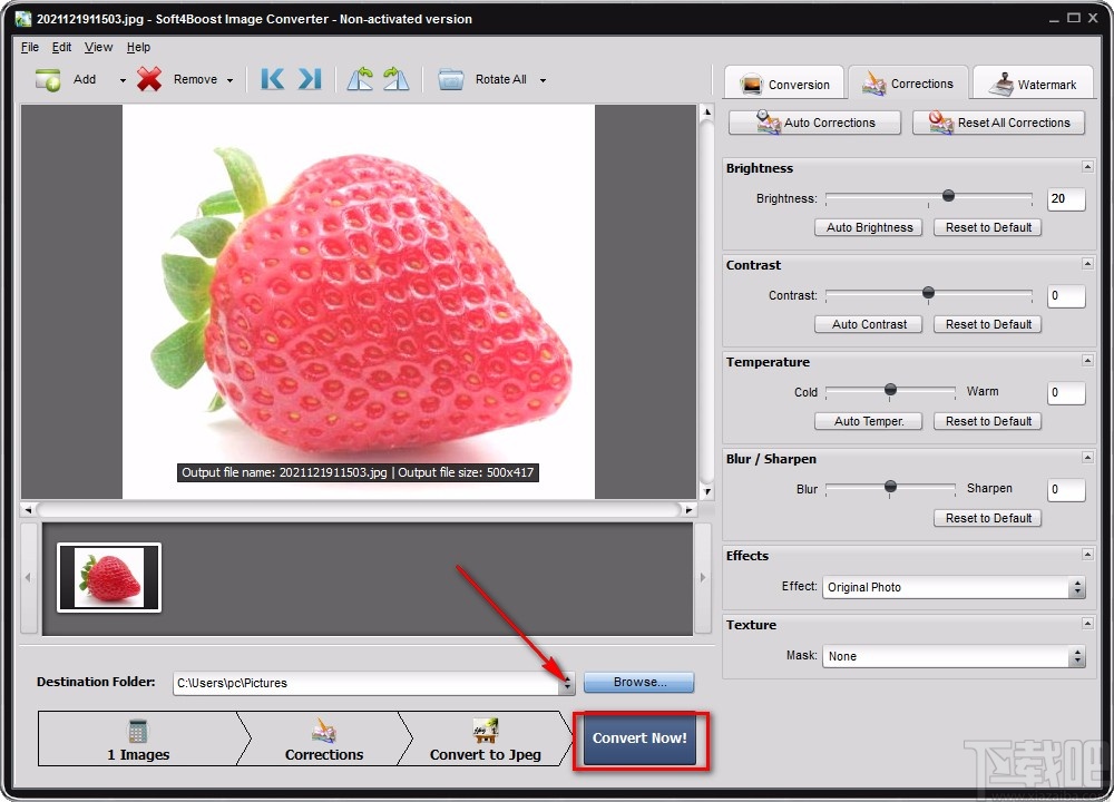 7.完成以上所有步骤后,我们在界面底部找到“Convert Now”按钮,点击该按钮就可以开始调整图片亮度了。