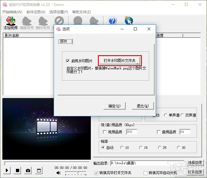 使用上述教程中的操作方法我们就可以在超级PSP视频转换器这款软件中替换水印图片了,有需要的朋友赶紧试一试这个方法吧,希望这篇教程能够帮助到大家。