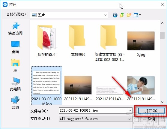 2.在文件添加页面中,我们将需要进行分割操作的图片文件选中,并点击页面右下角的“打开”按钮就可以了。