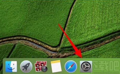 1.首先打开电脑,我们在电脑桌面的底部找到齿轮状的系统偏好设置按钮,点击该按钮就可以进入到系统偏好设置页面。