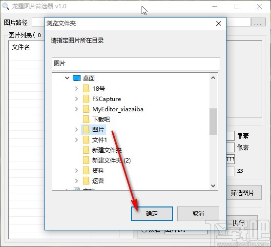 2.点击之后接下来会打开一个选择图片文件夹的界面,我们选择想要筛选的图片所在的文件夹,选择之后点击确定按钮。