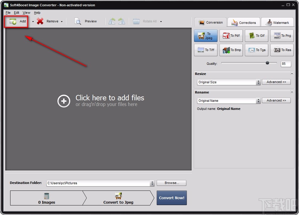 1.首先打开软件,我们在界面左上角找到“Add”按钮,点击该按钮就可以打开文件添加页面。