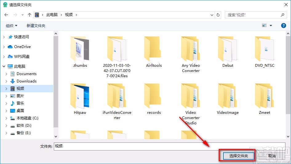 4.接下来在文件保存路径选择页面中,我们将文件的保存位置选中后,再点击页面右下角的“选择文件夹”按钮就可以了。