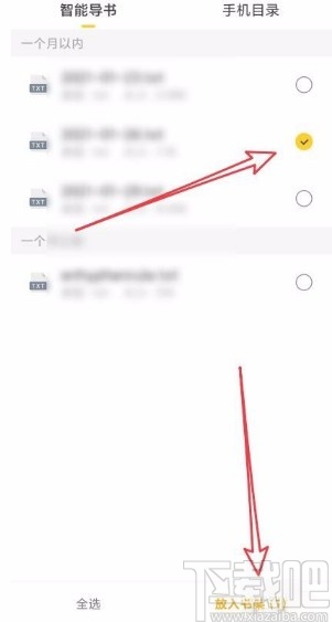 4.随后在导入本地图书页面中,我们找到需要导入的文档并勾选,再点击页面右下角的“放入书架”按钮就可以了。