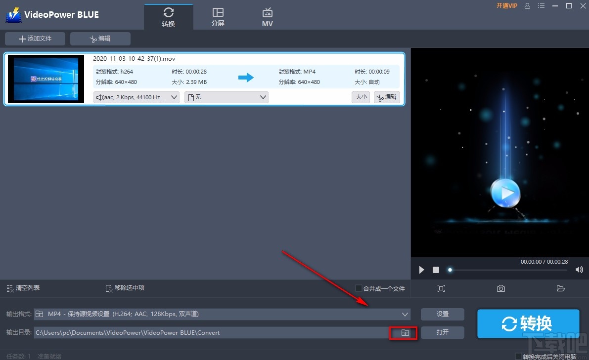 9.完成以上所有步骤后,我们在界面右下角找到“转换”按钮,点击该按钮就可以开始剪切视频了。