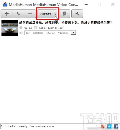 3.点击打开按钮之后下一步就可以在界面上方找到Format这个格式选项了,点击它准备选择想要转换的格式。