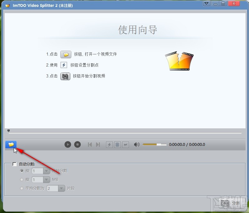 1.首先第一步我们打开软件之后,点击软件界面中的文件夹图标,点击之后就可以选择想要分割的视频了。