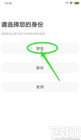 4.使用本机号码登录之后,下一步就需要选择身份了,然后我们在其中找到学生这个选项,点击之后就能够以学生的身份登录应用。