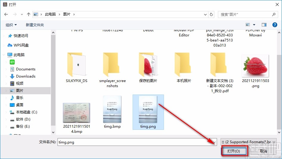 5.接下来在图片文件添加页面中,我们将需要添加到PDF文件中的图片选中,再点击页面右下角的“打开”按钮就可以了。
