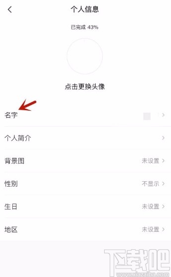 4.随后就会进入到个人信息页面,我们在页面上找到“名字”选项,点击它就可以进入到名字页面。
