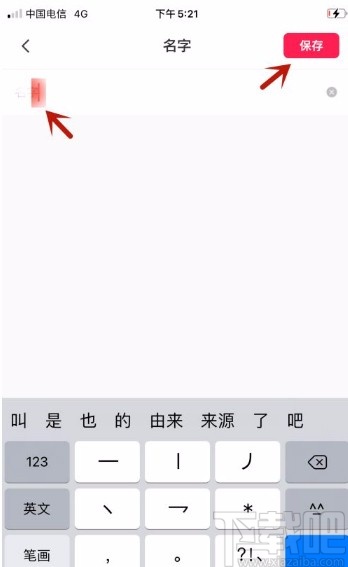 5.最后在名字页面中,我们在页面上输入新名字后,再点击页面右上角的“保存”按钮,即可成功修改好名字。