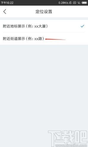4.最后进入到定位设置界面之后,我们就可以看到有地标显示以及街道显示两种方式了,然后根据自己的需求选择其中一个显示方式即可进行切换,直接点击即可。