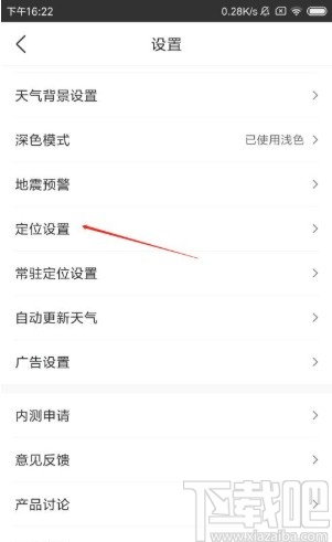 3.下一步在这个设置界面我们找到定位设置这个选项,然后点击可以进入到应用的定位设置界面,如下图中所示。
