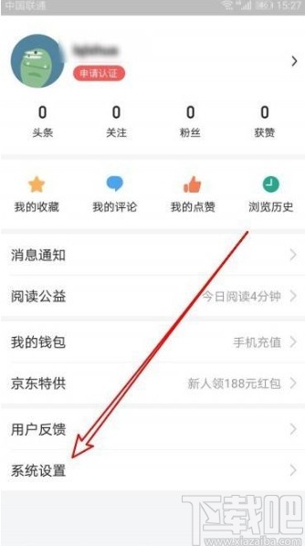 3.点击切换到个人中心界面之后,在界面中找到系统设置这个选项,点击之后可以进入到应用的系统设置界面。