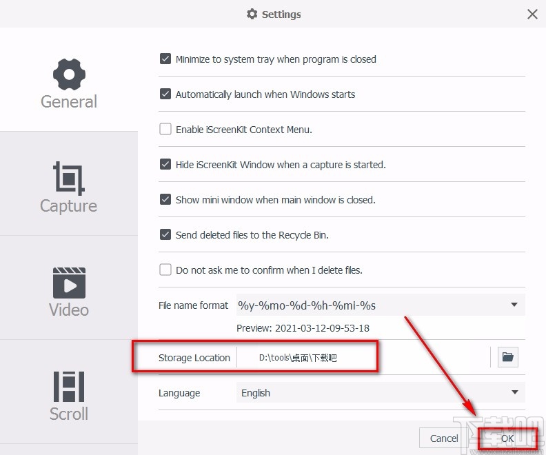 5.完成以上所有步骤后,我们就在界面上找到“Storage Location”选项,可以看到该选项后面显示的就是刚刚设置的保存位置了,这时候点击界面右下角的“OK”按钮,即可成功完成全部的操作步骤。