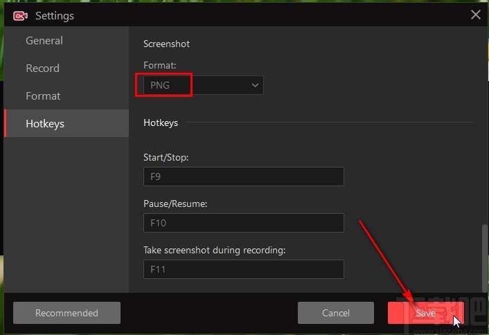 6.选择好想要保存的截图格式之后,在界面的右下角找到Save这个保存按钮,点击之后就可以保存设置格式的修改了。