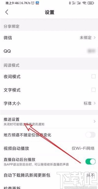 3.进入到设置页面后,我们在页面上找到“推送设置”选项,点击这个选项就可以进行下一步操作。