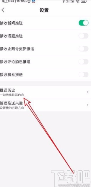 4.接下来就会进入到设置页面,我们在页面下方找到“推送历史”选项,点击该选项就可以了。