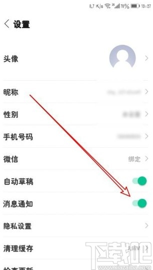 4.进入到应用的设置界面之后,在界面的右边可以看到消息通知这个选项,点击它右边的开关将这个功能关闭即可。