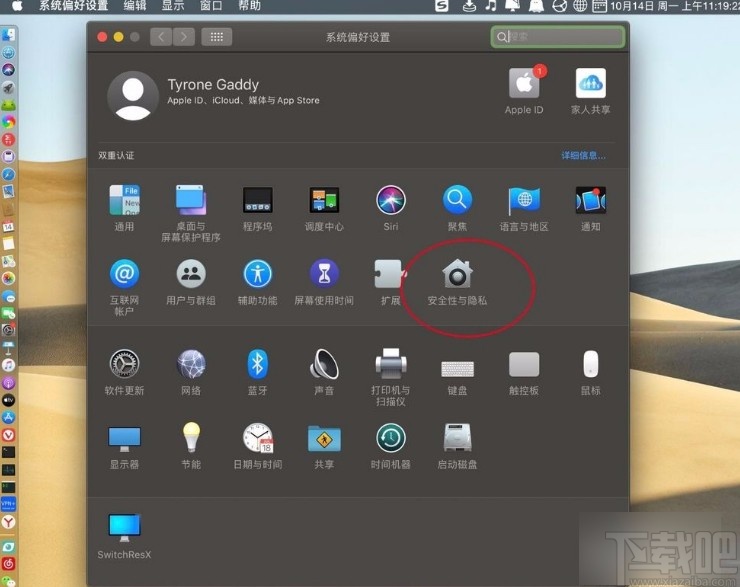 3.随后就会进入到系统偏好设置页面,我们在页面上找到“安全性和隐私”选项,点击它即可进行下一步操作。