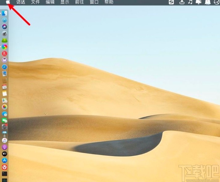 1.首先打开电脑,我们在电脑桌面的左上角找到苹果图标按钮,点击该按钮,其下方就会出现一个下拉框。