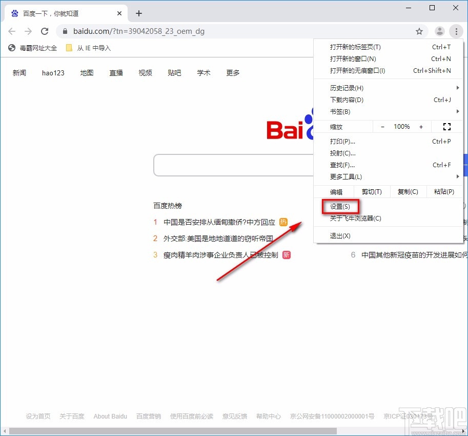 2.在下拉框中可以看到很多的操作选项,我们在这些选项中找到“设置”选项并点击,就可以进入到设置页面。