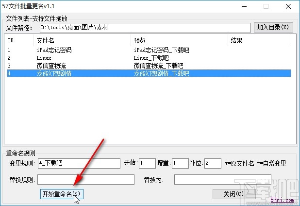 以上就是小编今天跟大家分享的使用57文件批量更名这款软件的时候重命名文件的具体操作方法了,有需要的朋友赶紧试一试这个方法吧,希望这篇教程能够帮助到大家。