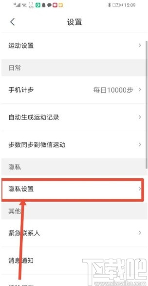 4.下一步在这个应用的设置界面中,我们找到隐私设置选项,点击这个隐私设置进入到相关的操作界面。