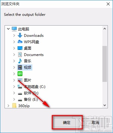 3.接着界面上就会弹出一个浏览文件夹对话框,我们在对话框中将视频的保存位置选中,再点击窗口底部的“确定”按钮就可以了。
