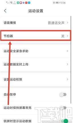 5.接下来在运动设置界面我们就可以看到有节拍器这个设置功能选项了,需要点击进入到其中。