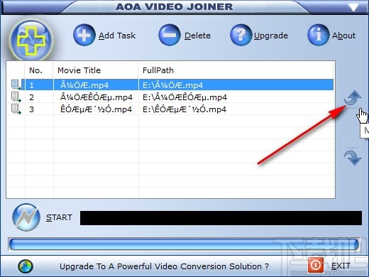 4.点击调整好合并的顺序之后,接下来我们在软件的界面中可以点击START这个按钮开始进行视频的合并操作。