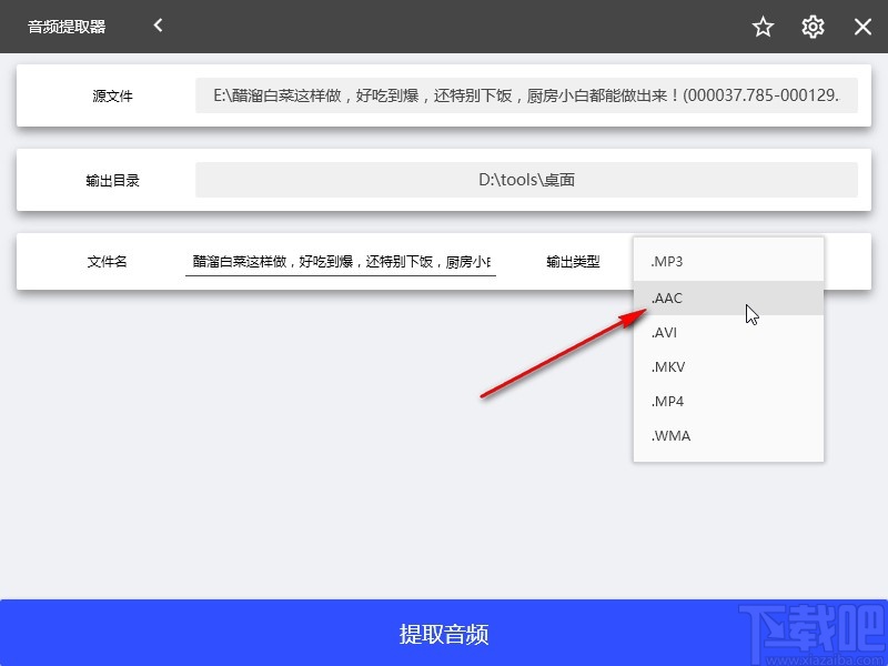 7.最后完成以上步骤之后就可以点击软件界面下方的这个提取音频按钮来开始提取音频了,等到提取操作完成即可。
