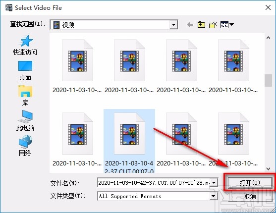 2.接着在文件添加页面中,我们将需要进行剪切操作的视频选中,再点击页面右下角的“打开”按钮就可以了。
