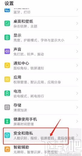 2.接着在设置页面中,我们在页面上找到“安全和隐私”选项,点击该选项就可以进入到安全和隐私页面。