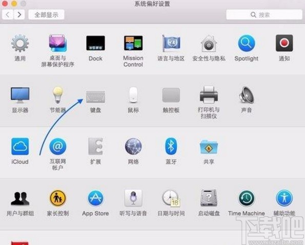 2.接着在系统偏好设置页面中,我们在页面上找到“键盘”选项,点击该选项就可以进入到键盘页面。