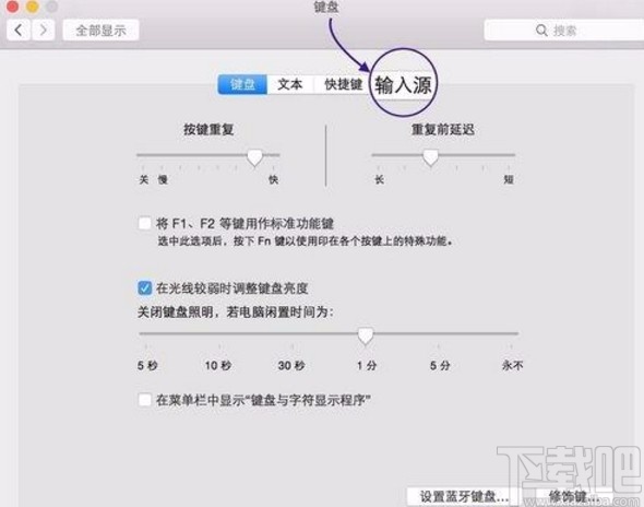 3.接下来在键盘页面中,我们在页面上方找到“输入源”选项,点击它就可以进行下一步操作。