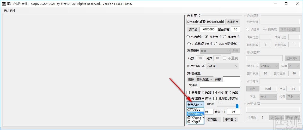 4.接下来下一步根据自己的需求选择好想要合并的参数之后,还可以设置合并之后的图片保存的格式,点击下拉列表之后选择保存格式即可。