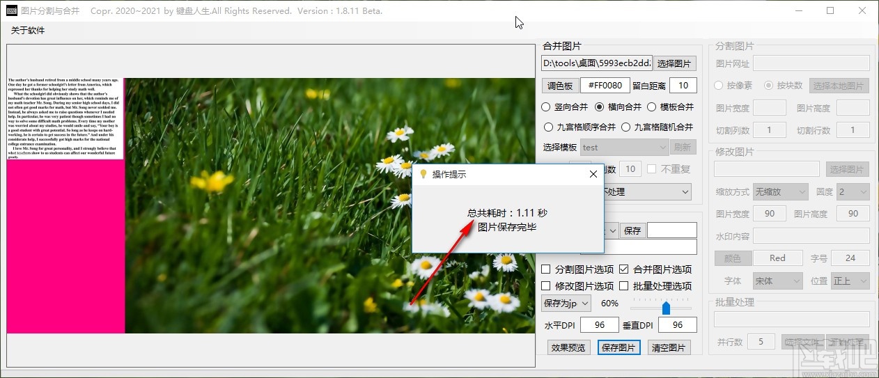 7.最后点击保存按钮之后会自动保存合并之后的图片文件,并且界面中会显示已经操作完成的提示,这样就表示已经成功合并图片并且输出保存了。