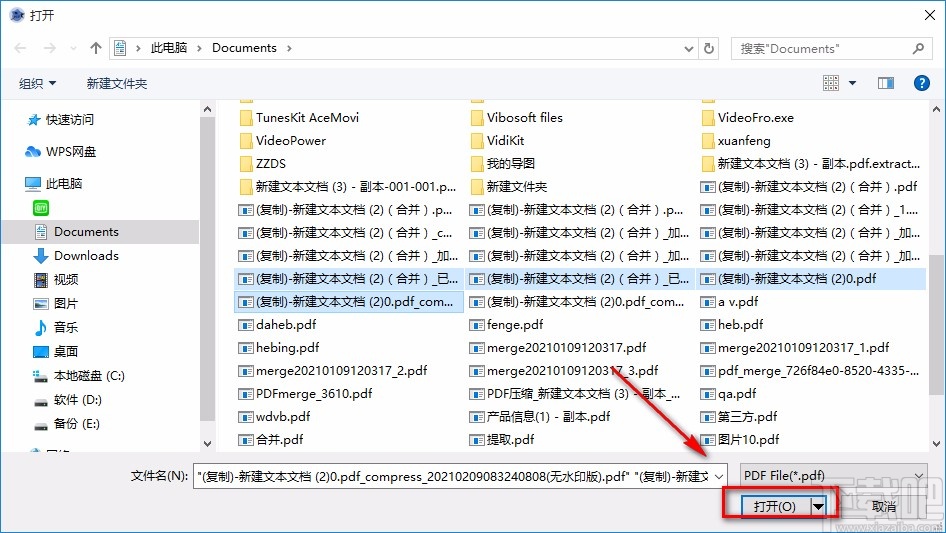 3.然后在文件添加页面中,我们将需要压缩的PDF文件选中,再点击页面右下角的“打开”按钮就可以了。