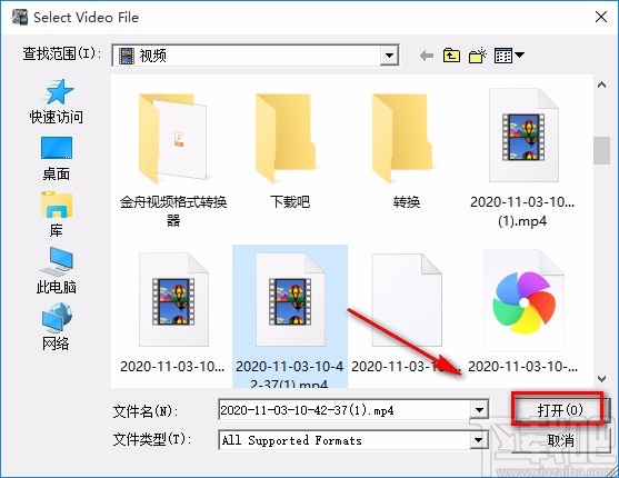 2.在文件添加页面中,我们将需要裁剪画面的视频选中,再点击页面右下角的“打开”按钮就可以了。